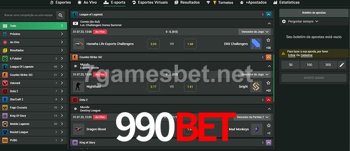 O 990Bet oferece uma grande seleção de opções de apostas em e-sports com probabilidades competitivas